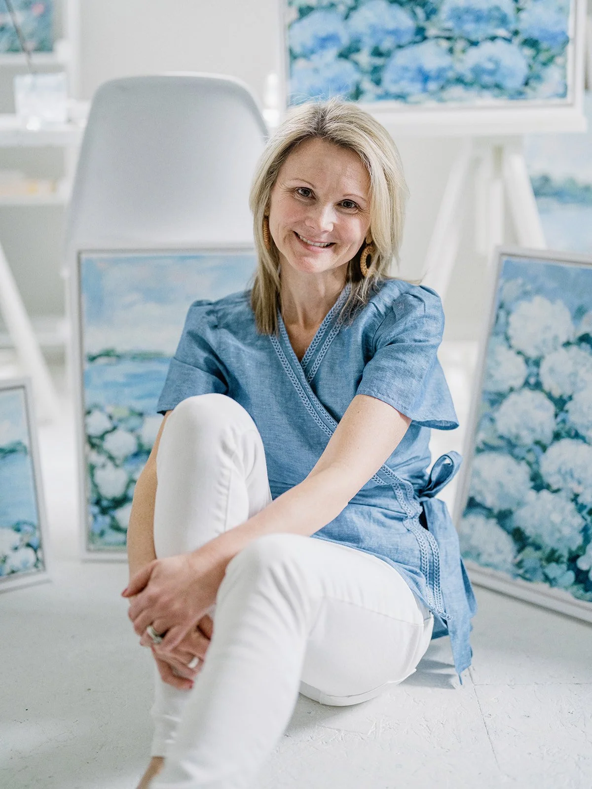 Growing up I spent my summers on the Lake Erie Islands and along the sandy shores of Lake Michigan. I fell in love with the waves, islands and carefree life along the lake. That feeling of being on the water carried over into my paintings. Recently, my family and I built a cozy cottage on an island in the middle of Lake Erie. My paintings reflect life on the island. Hollyhocks along the lake, hydrangeas in front of adorable cottages and sailboats racing across the lake. I paint these scenes in an impressionistic style using acrylic paint to amplify these restful landscapes.