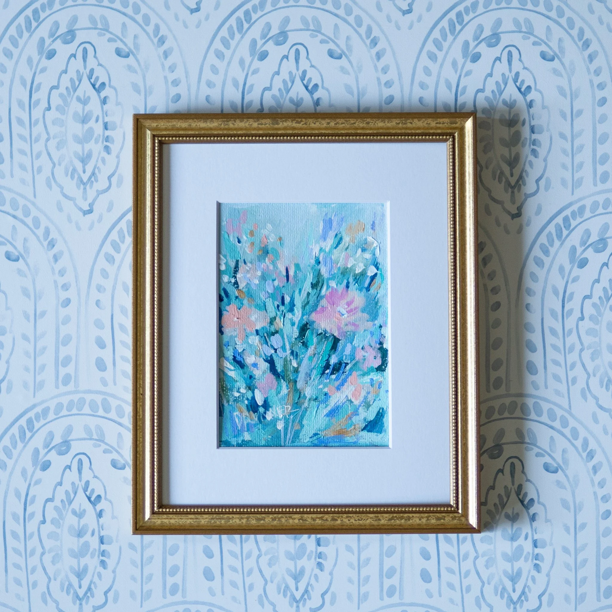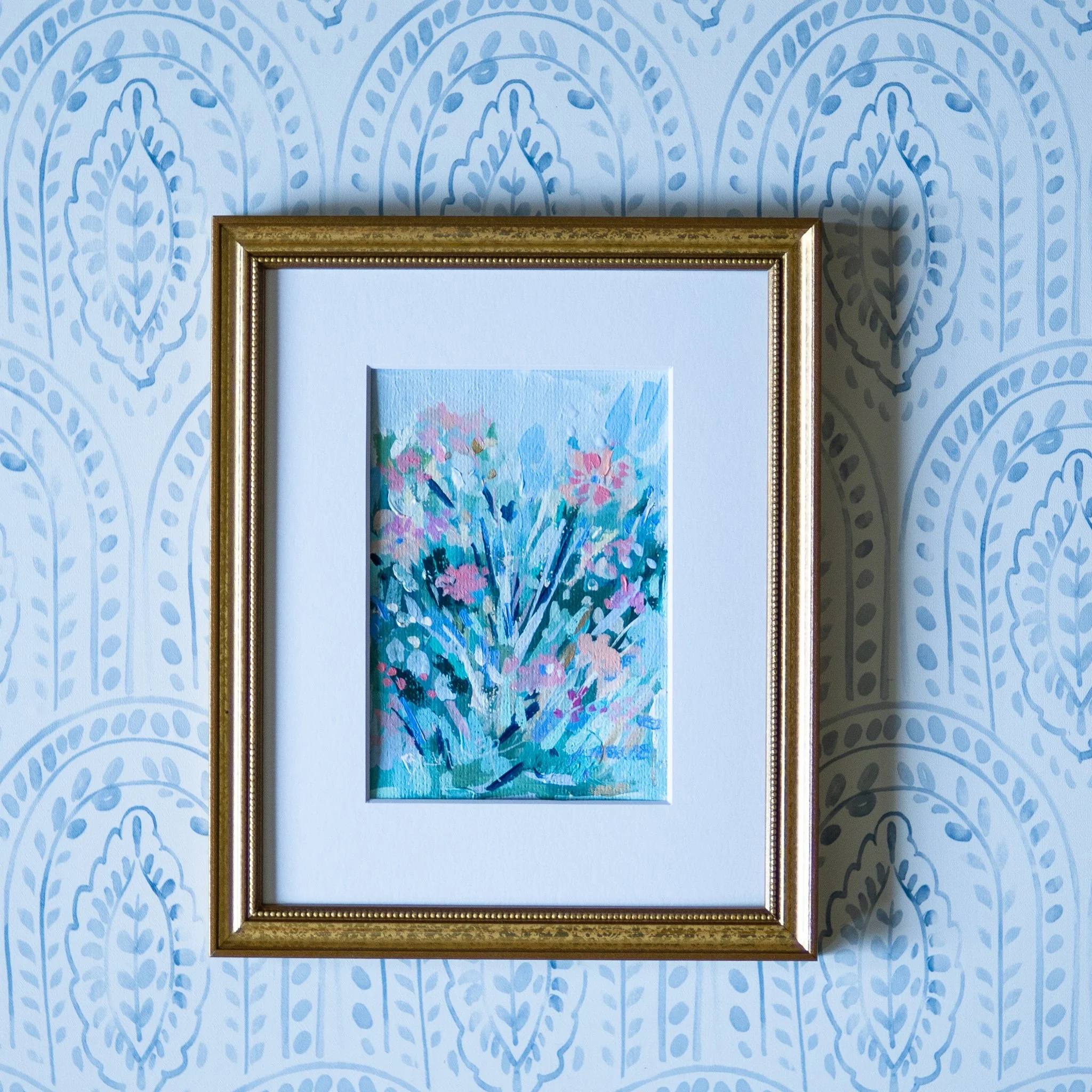 These wildflower paintings include four original 5 x 7 acrylic paintings on paper that will come matted and framed in gold. Throughout the paintings I made sure to include little flecks of gold paint which really look beautiful with the frames. Each pieces is designed to bring a sense of color and life into a space, whether styled on a shelf, or hung on the wall.
